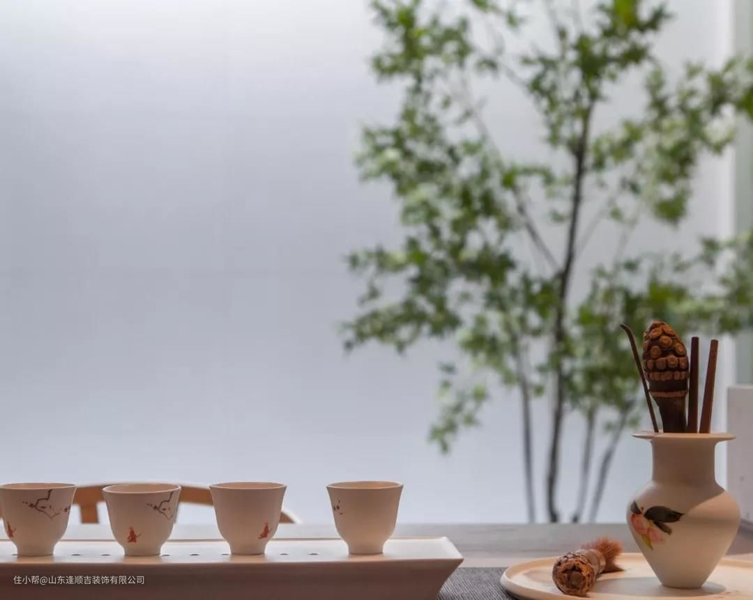 留白不仅是画作构图的技巧,也是装饰出雅致茶室的核心,尝试茶室的适度留白,打造简约禅意的茶室空间。