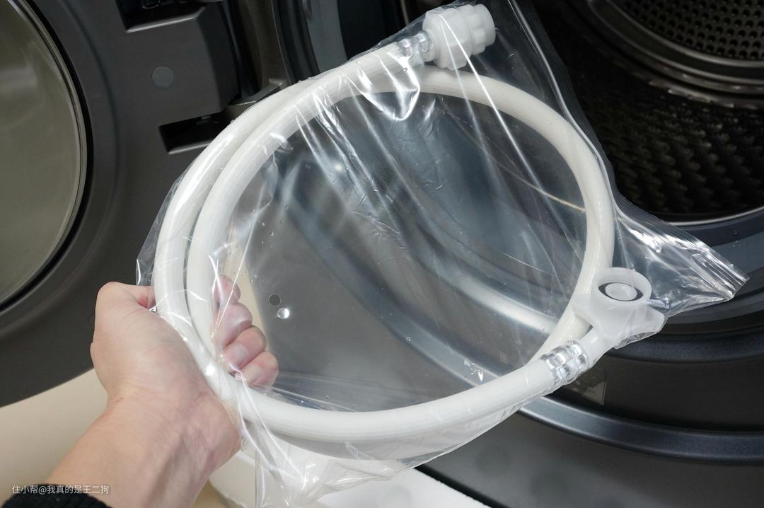 开门后发现了一条包装好的进水管,进水管外包装有些许水珠,咨询了安装师傅说是出厂前做了测试的原因。