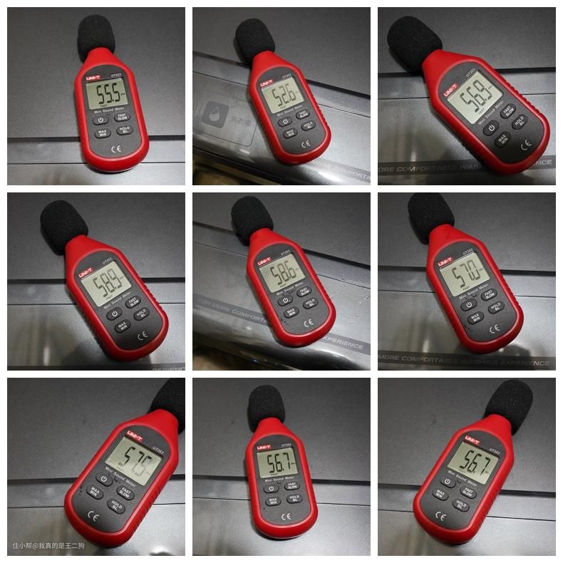 不同工作阶段随机选择几个时间节点测试,洗烘一体机在过程噪音控制不错,基本在55分贝左右。二狗家里洗衣机在小阳台,距离客厅和卧室较远,除了偶尔衣物拍打滚筒的声音外基本感受不到明显的噪音。相比之前的洗衣机噪音控制优秀不少,整体的噪音控制表现满意。