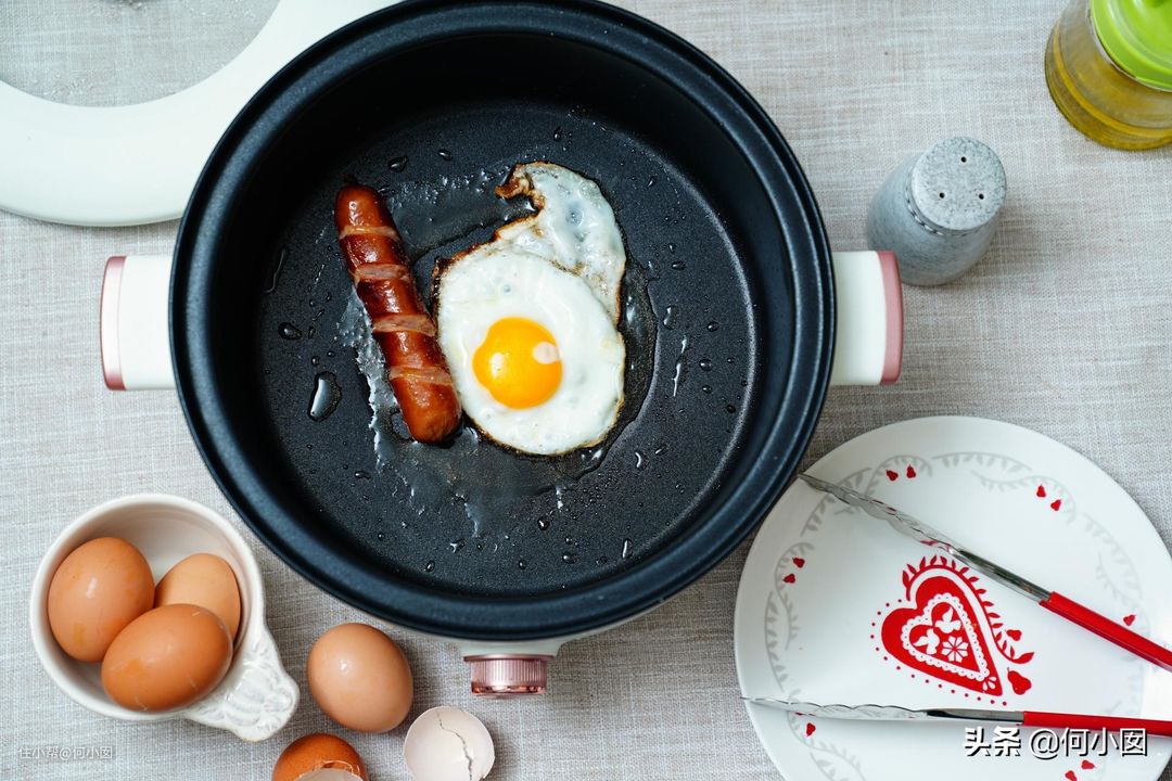 如果你想换花样,早餐吃煎蛋再煎一根肠,两个人的分量一次可以出锅,妥妥的