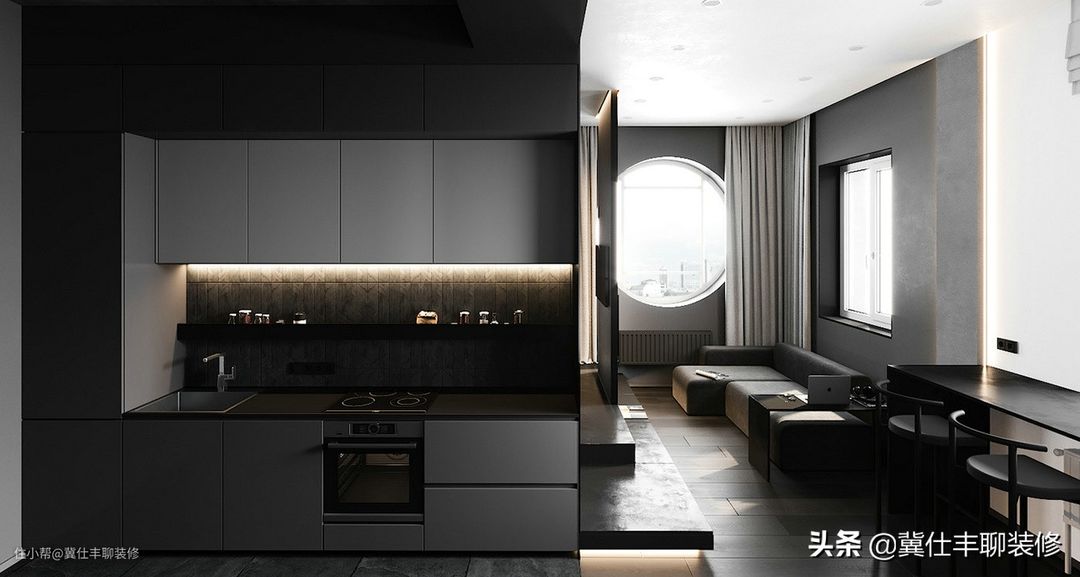 现代极简一居室,以高级黑与高级灰为基调,装修效果就是这么酷!