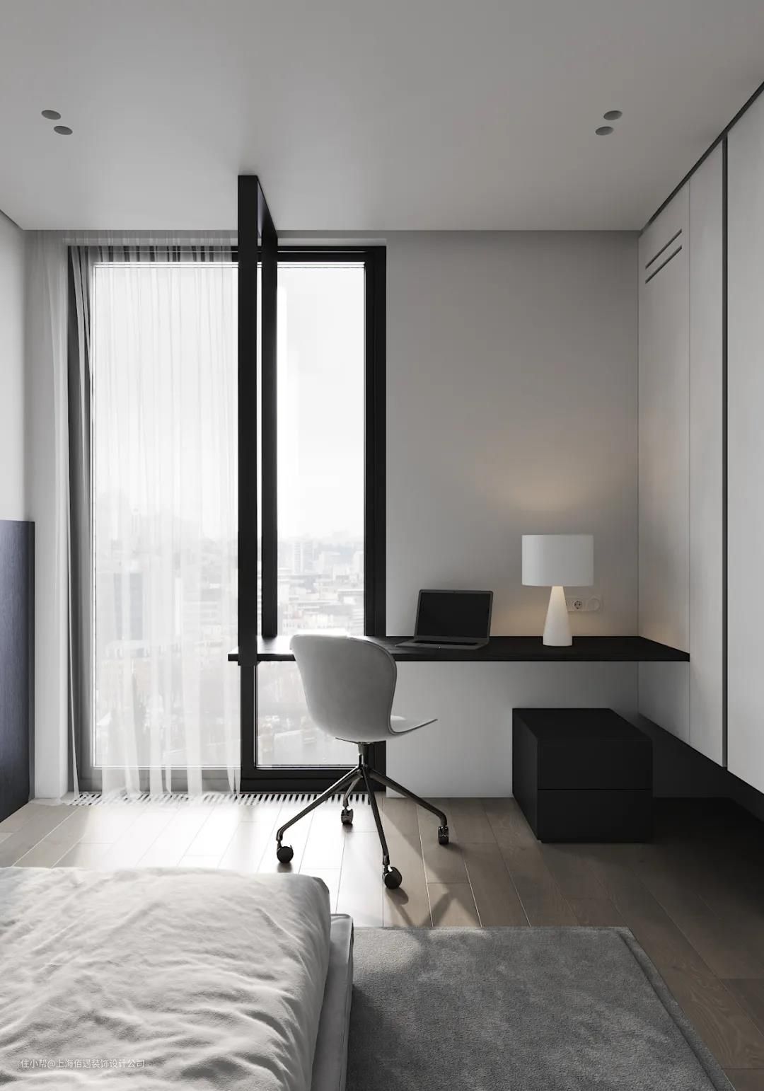 整个色调以黑白灰空间为主,及大量的留白,设计师对空间和采光最大化利用,运用各种配饰来体现屋主的趣味和喜好,营造出一种宁静轻松的氛围。
