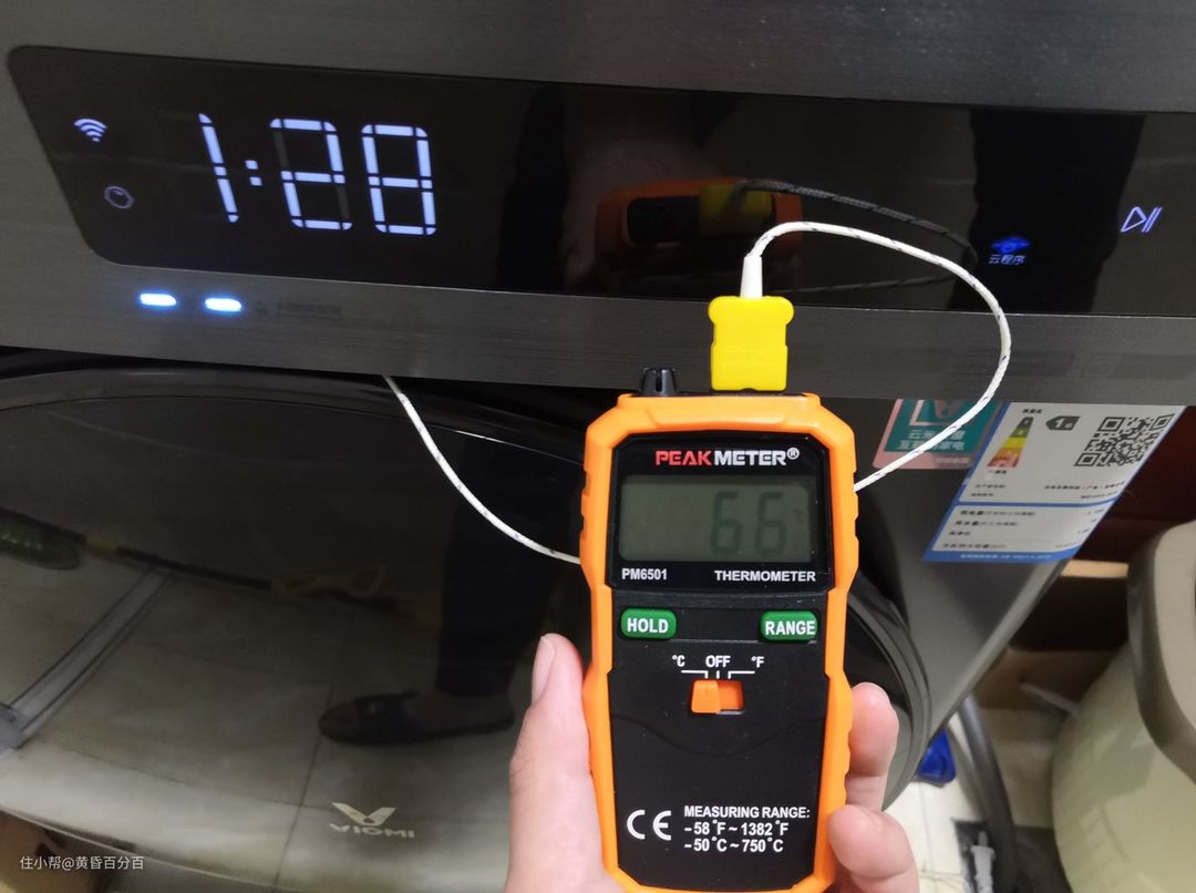 ▲在低温烘干测试中,温度始终稳定在65-70°C之间,并没有容易损伤衣服的过高温度。