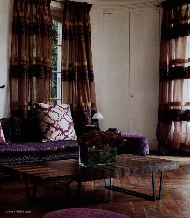 一个成功的室内装饰设计,色彩只是其中的一部分。还有另外两个重要因素——材质与图案。一间浅灰褐色墙面、橡木地板和乳白色家具的房间,通过选用亚麻窗帘、绒线饰品、皮革镶边的剑麻地毯、羊毛床罩和真丝靠枕等不同质感的饰品,为单调的空间平添了活力。材质对于家居设计的重要性在于,不同材质的肌理通过对光的反射和吸收,产生微妙的质感变化。