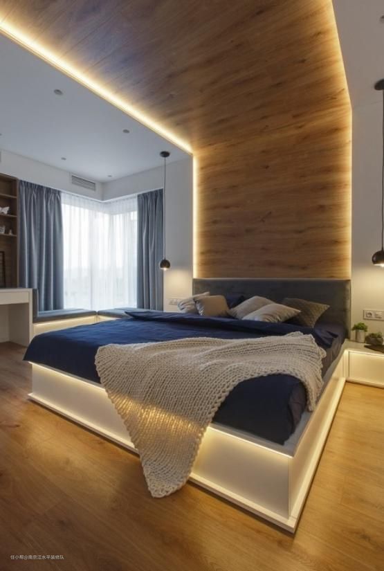 卧室是休息睡觉的地方,灯具不用选择的太过于复杂,灯光不用选择太亮的选一些暖色系的光源就很好,也可以选择无主灯的设计,搭配筒灯射灯还有台灯光源基本够用,还可以用线条灯来搭配效果也是很不错的。