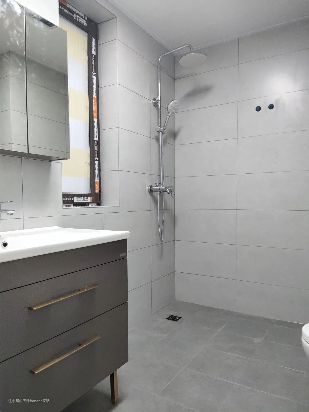 搭配了套餐内全套惠达轻奢浴室柜,款式现代,储物空间充足。