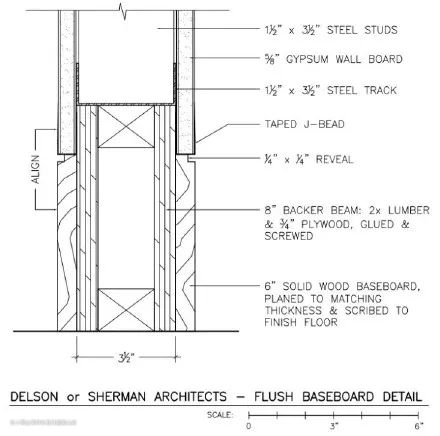 据说还有一种方法可以解决木地板不用踢脚线这件事,叫做“地板塞墙大法”:沿着墙角,凿出一条小缝,把地板塞进去一点点,从外观看就像地板和墙面无缝衔接一样。(如图)