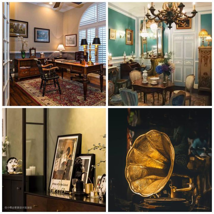 越早被人们开发使用的材料,越是有岁月的味道,比如黄铜、皮革和天鹅绒,这些都是vintage的装修风格常见的装饰物。