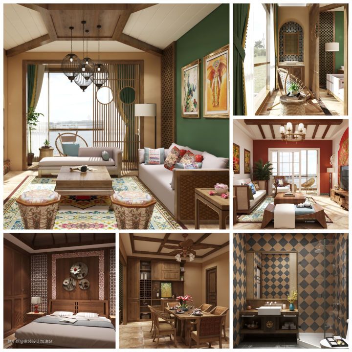 提到东南亚,许多人都会不自觉的联想到神秘的庙宇或是炎热的气候,东南亚风格是一个结合东南亚民族岛屿特色及精致文化品位相结合的设计,充满热带异域风情,广泛地运用木材和其他的天然原材料,如藤条、竹子、石材、青铜和黄铜,深木色的家具,局部采用一些金色的壁纸、丝绸质感的布料,灯光的变化体现了稳重及豪华感,同时也展现了来自热带雨林的自然之美。