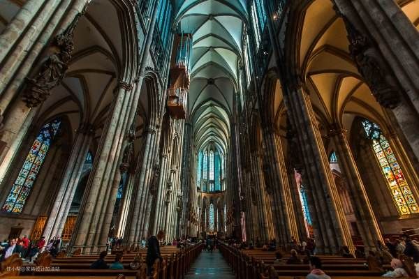 哥特式风格属于中世纪风格,内饰肃穆(多体现于房顶),讲究象征,多与与宗教器物紧密相关。哥特式风格建筑室内屋顶墙角打磨圆滑,内部讲究采光。同时,墙面常见横幅油画,用以弥补其墙面特色。(代表:科隆大教堂)