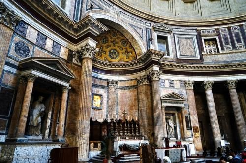 古罗马风格也是欧洲古典主义风格的一种,内饰华丽,讲究雕饰,檐角及墙上檐多用古典主义雕花。建筑基调稳重粗大,相比希腊更多用拱形结构,多用科林斯柱式,同时常见人体素雕及哲人半身像出现。(代表:罗马万神殿)