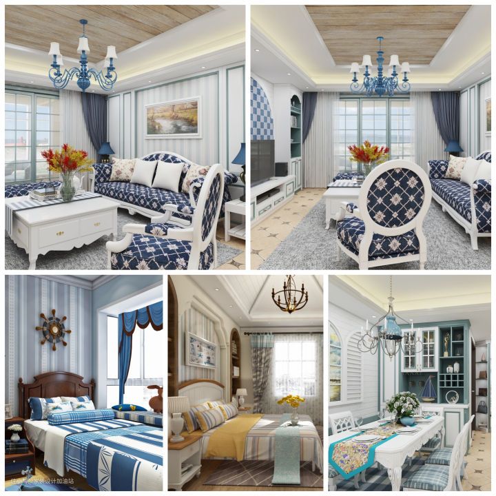 地中海风格的家居,一般会采用这么几种设计元素:白灰泥墙、拱廊或拱门,海蓝色的门窗。地中海风格的灵魂,目前比较一致的看法就是蔚蓝色的浪漫情怀,海天一色、艳阳高照的纯美自然。