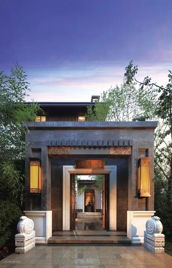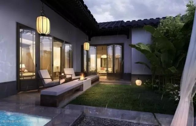 考虑到替换的“度”,也可以一半玻璃一半木格栅。屋顶材质替换:屋顶是传统建筑中代表性要素,虽形式古朴但很有含义,不过古屋顶却不能完全符合现代人审美,新中式庭院设计中刚好可以采用新材料对屋顶进行变换。门窗、柱廊、小品等元素也可进行材料替换。