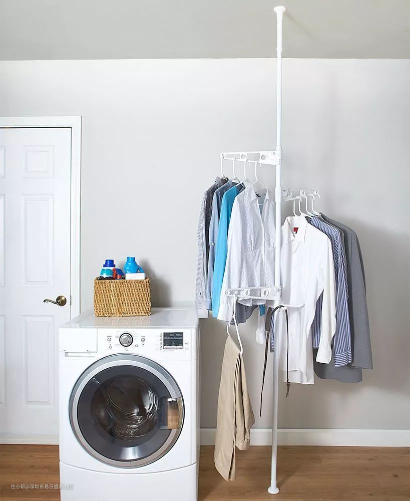 顶天立地晾衣杆近几年非常火,一根杆,从天花板到地板,上面固定住晾衣挂钩,就是它的全部组成。有一些高级的顶天立地晾衣杆还能旋转,让每一件衣服都晒到阳光。