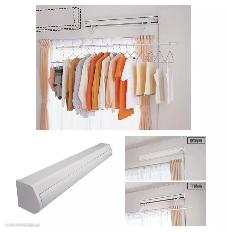 松下还有一款颜值很不错的隐形晾衣架,平时像一条日光灯管一样,收藏在屋顶上,需要的时候可以降下来晾衣服。比普通的晾衣架要好看不少。就算阳台包进卧室了,也适合用。