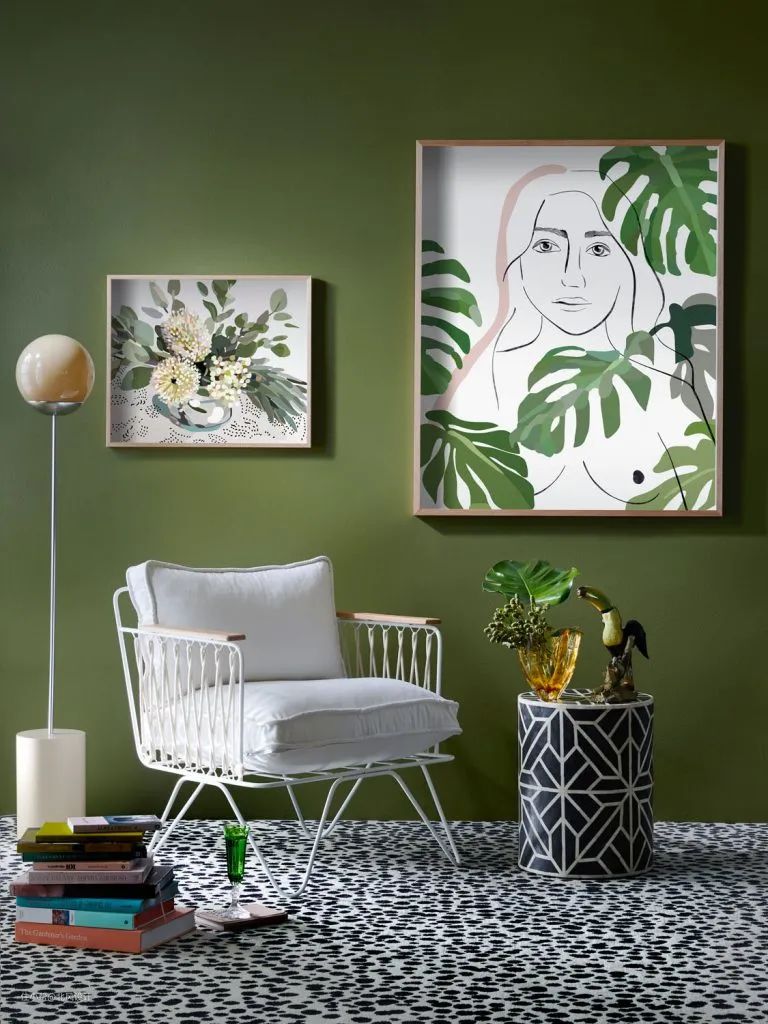 来看到这张图片,这个空间里,本来是本来干净的、毫无亮点的白色墙面。沙发茶几随意搭配毫无特色。