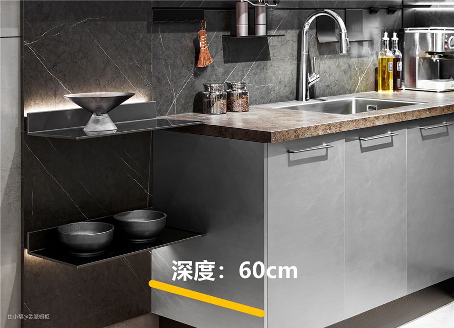 台面高度如果不合理,每天下厨都要得腰间盘突出了;地柜深度有讲究,台面进深影响操作空间利用率。