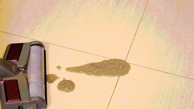 之前使用手持无线吸尘器时,液体干了之后在地板上留下的污渍很让人头疼,反复湿拖好多遍都清理不掉黑印,最后只能手动用抹布擦。艾迪宝洗地机T80对这类污渍的清洁效果让我有点惊喜,正常速度一推一拉就擦干净了,如果慢一点只需轻轻推过就能擦掉地板上的污渍。