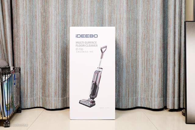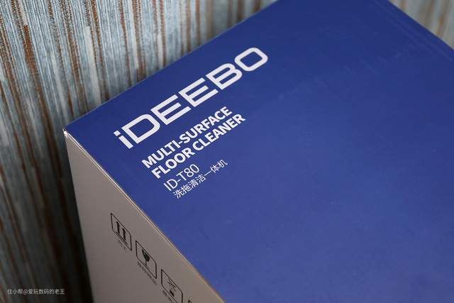 关于艾迪宝洗地机T80的介绍就从简单的开箱开始吧。一套简约式包装设计,蓝白撞色的包装箱印着产品实物图和部分参数信息。