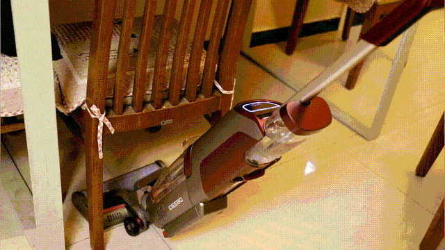 机身与地刷之间可以灵活转动,轻松清理桌椅板凳区域。