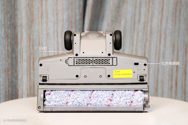 滚刷的底部也不简单,设有一排UV灯,它是借鉴了医用紫外线消毒技术,采用254NM灭菌灯管,在不添加化学消毒液的情况下,杀菌率可达到99.9%。