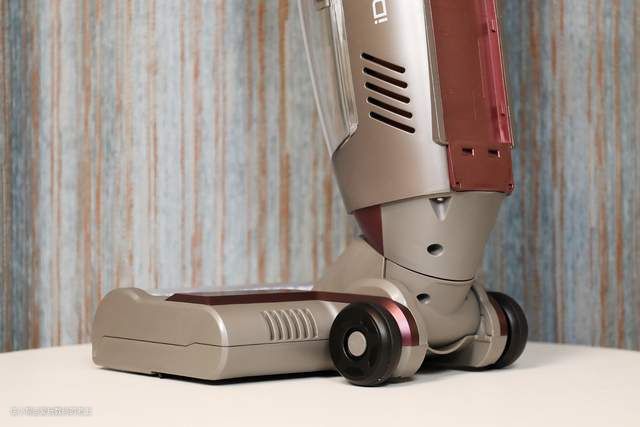 这台艾迪宝洗地机比手持吸尘器重一些,考虑到不同使用人群,因此在机器的底部增加了两个轮子,移动时省力了许多。配合115cm左右的高度,成人使用时不用驼背、单手即可操作。