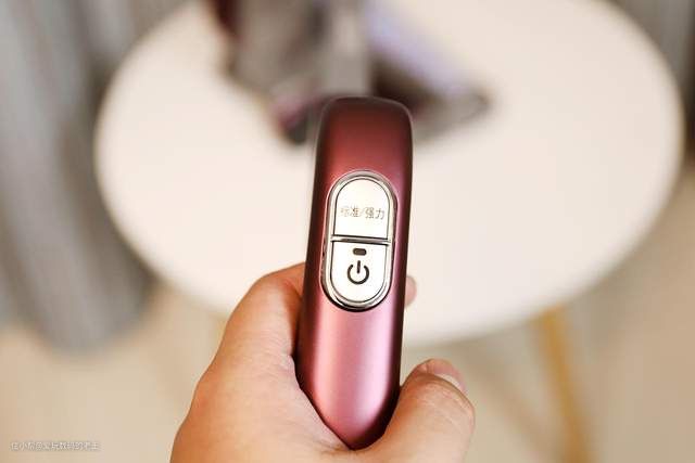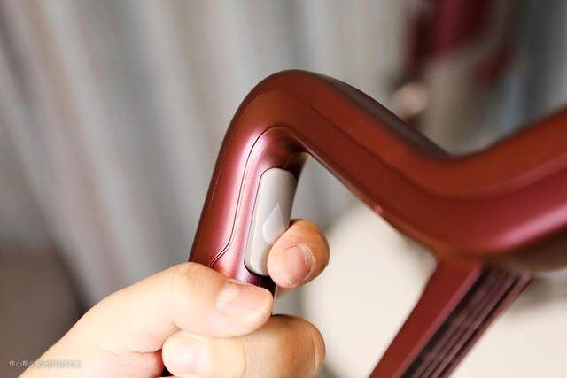 手柄的握持很舒适,在手柄的顶部有两枚实体按键,上面是换挡键,可切换标准、强力两个挡位,下面是开关键;在手柄内侧有一枚印着水滴的喷水键,在使用机器时可以有选择的喷水。不论手柄的粗细、曲度,还是按键的位置,都本着人体工学设计出发,握持感舒适、按键位置合理。