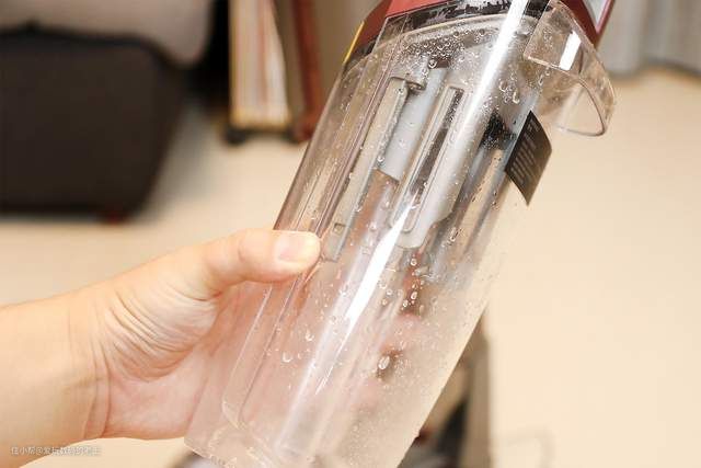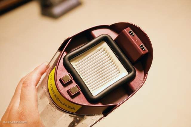 污水箱同样可以一键拆装,拿下之后可以看到在顶部还有一层HEPA滤网,可以有效防止污水箱中的灰尘扬到空气中,造成二次污染,这个小设计还挺贴心的。