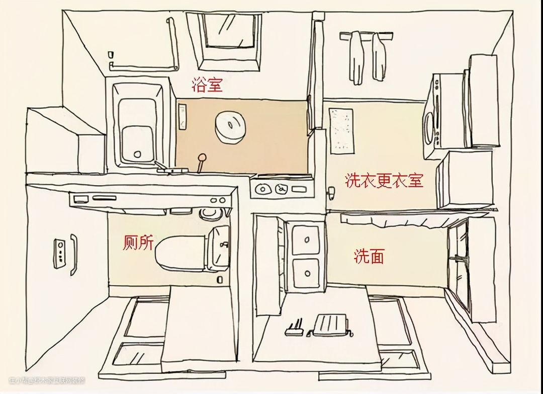 四分离就是把洗漱、如厕、洗衣、洗浴几个区域单独分开