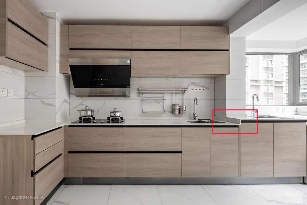 或设计成高低台,不用弯腰洗菜,也不用架着胳膊炒菜,使用感更好,高低台之间相差5-10cm即可。