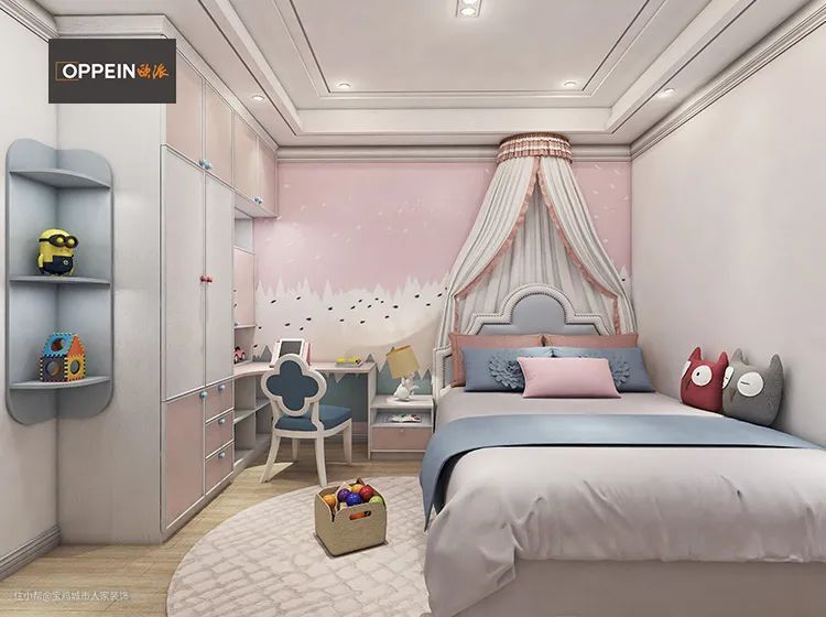 儿童房的衣柜在设计上可以多预留一些开放柜,放书、玩具、娃娃,或者奖状都可以。