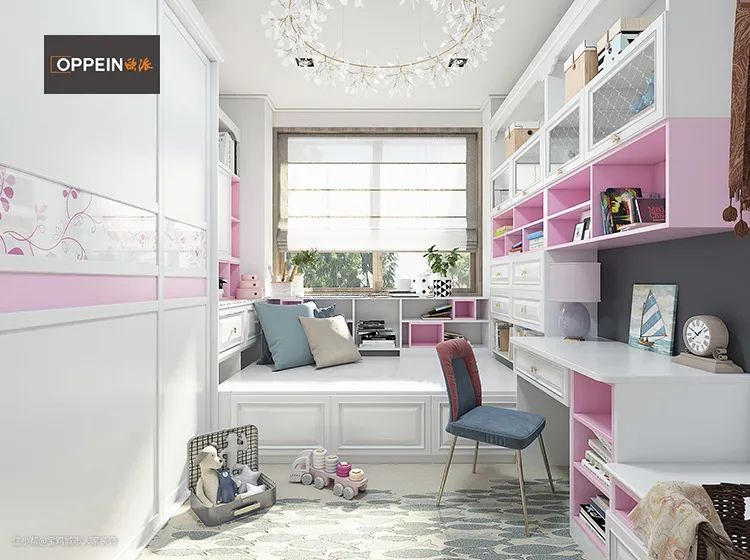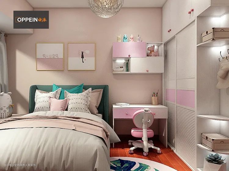 读小学的女生,建议从衣柜延伸出来定制一张书桌,一举两得。