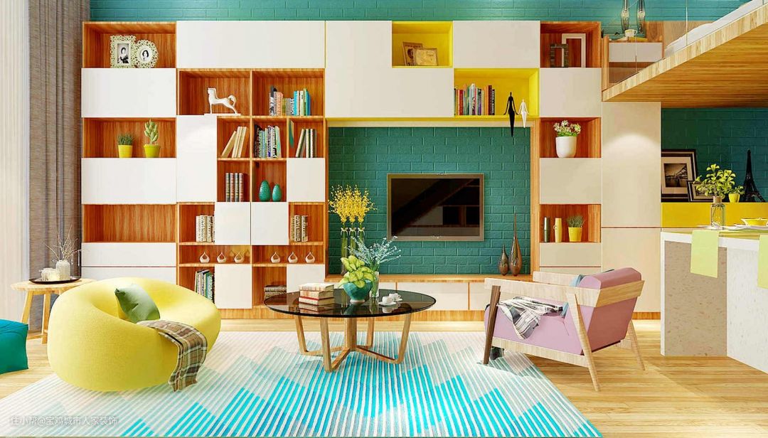 ▲错落有致的柜体组合,看似随意,实则精巧,独特的布局设计为客厅增添一份美感,也增添了一份趣味。