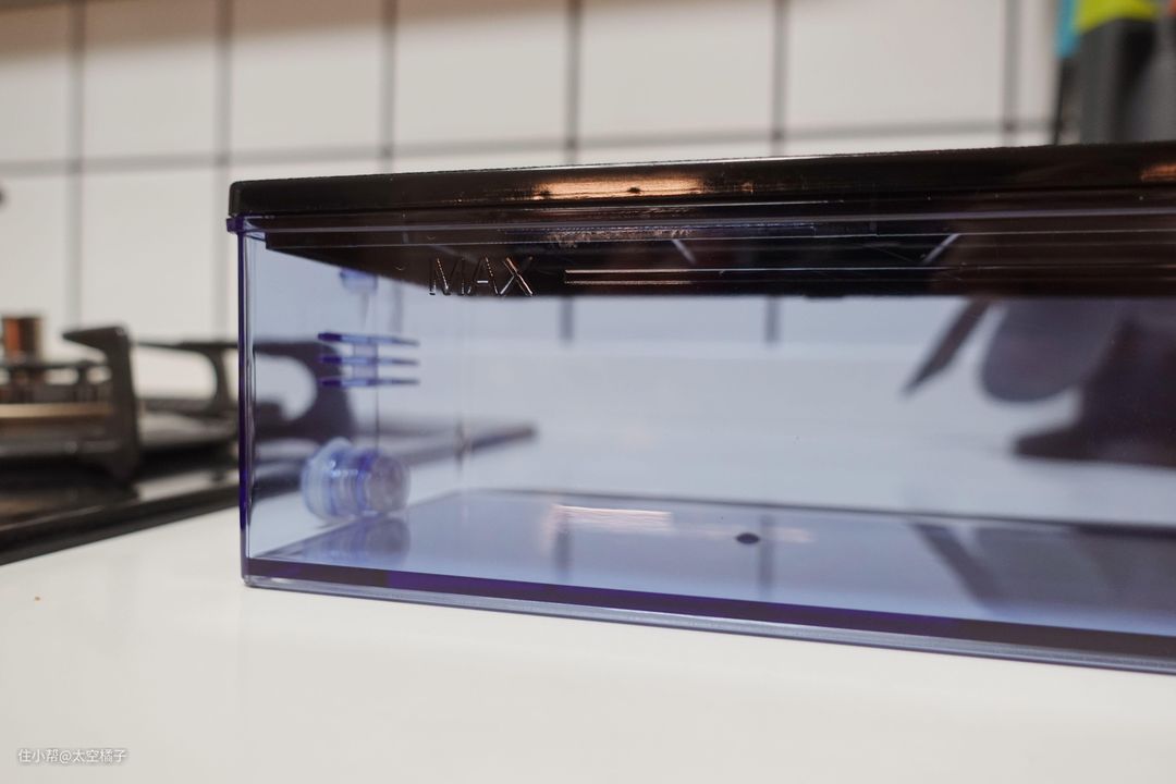 水箱整体容量为1.2L,侧面也有水量的标识,防止过多加水。