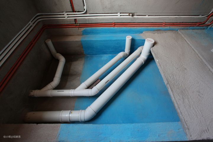 隔层排水的卫生间,我们自家排水管道在楼下邻居卫生间的顶面上(楼上邻居的排水管在我们自家卫生间的顶面上),所以我们自家的楼层不需要埋入排水管,也就不需要下沉35-40cm的沉箱了。