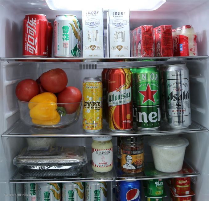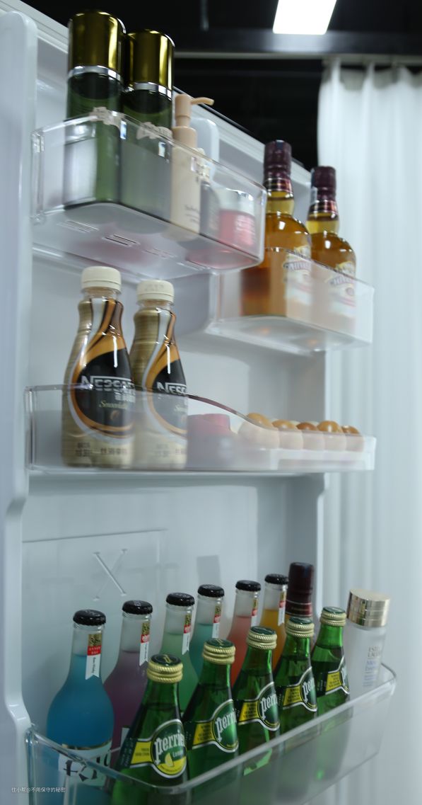 而冰箱门内侧的收纳架也能存放很多东西,个人的使用习惯是存储鸡蛋和各种酒水饮料,不仅存储方便,拿的时候也很方便。同时女同胞们还可以将自己的化妆品和护肤品放到侧面置物架上,较低的温度能够更好的保持产品的使用期,同时避免了阳光的直射和灰尘的侵染。