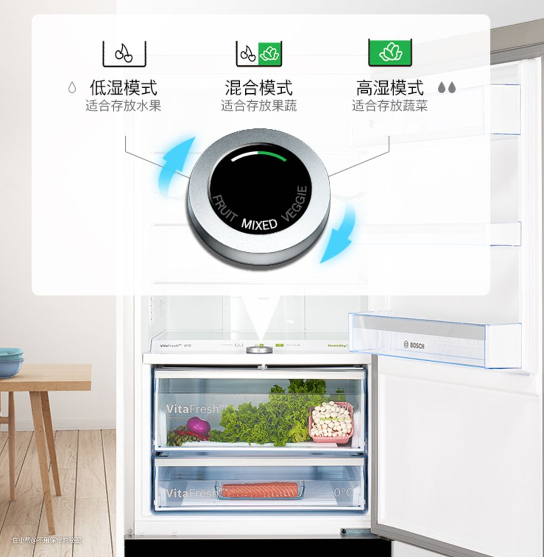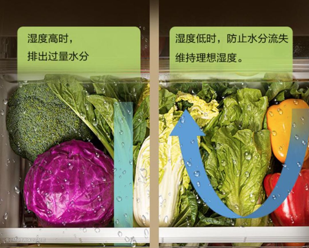 某世的维他零度保鲜也很有意思,没有直接采用温控方式来保证菜品新鲜,而是锁定区域温度,然后通过调节区域内的湿度来达成同样的目的,它拥有三种不同的模式,分别是低湿模式,混合模式以及高湿模式。其中低湿模式适合保存水果,高湿模式适合存放蔬菜,而混合模式则可以做到两者兼顾。