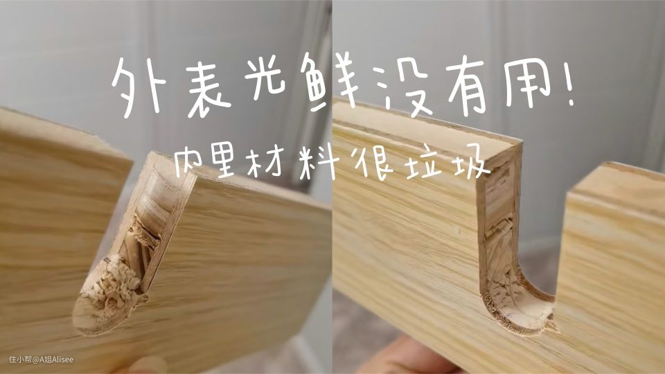 这个就是冒充实木家具的木工板,里面用的都是杂木,然后用胶水进行拼合。