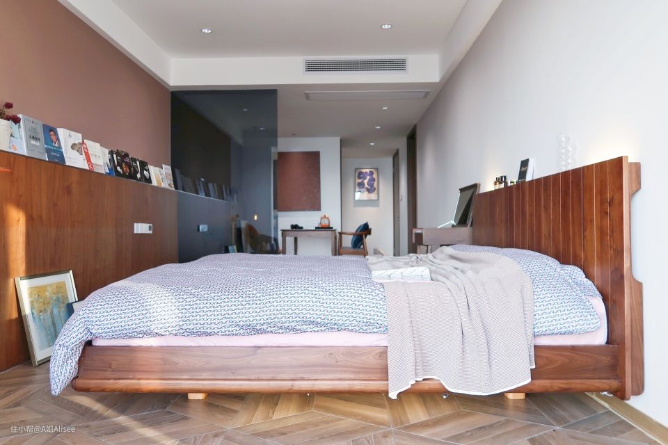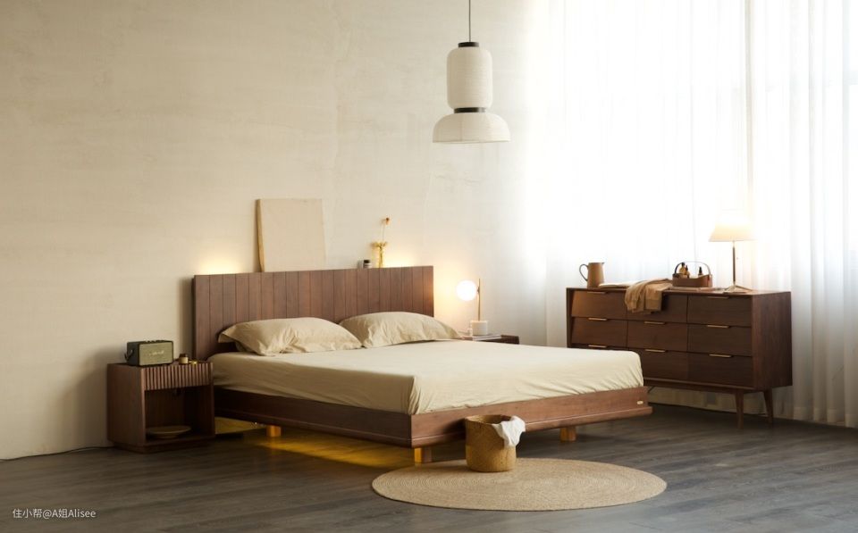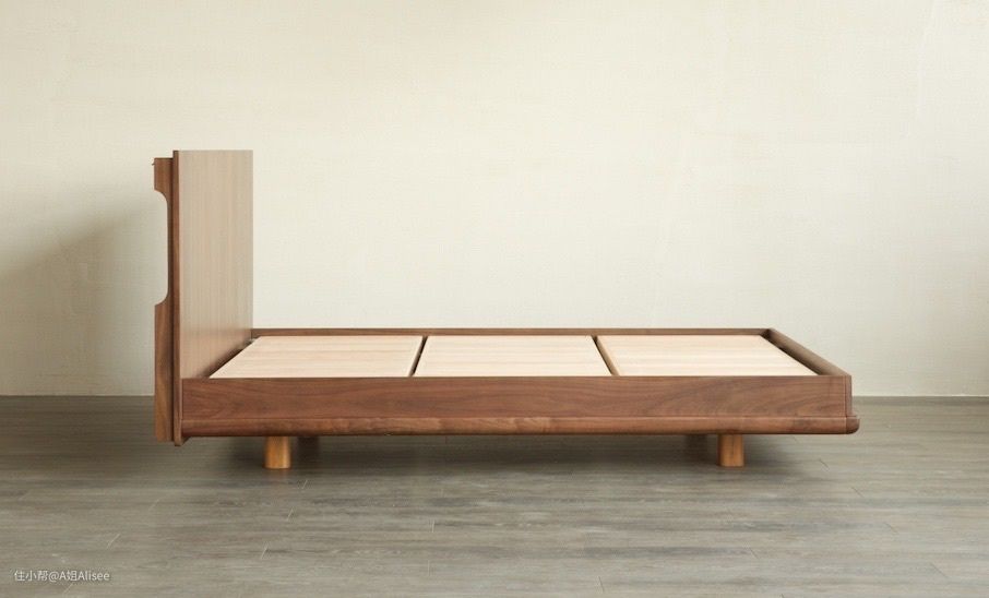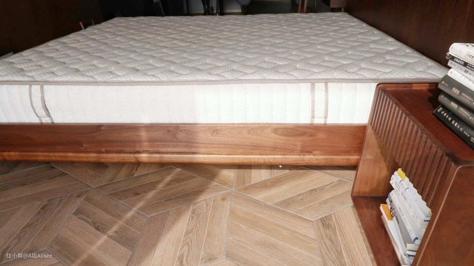 首先是这张床的超大床头,喜欢木床的宝宝都知道,木头连纹,板越大越稀有,越大气当然也越贵。这款的话做的是90cm的连纹宽阔床头大板。我一直都很喜欢北美黑胡桃,纹理很大气,质感也很温润,最重要的是他是属于硬木的范畴。耐用性更好。