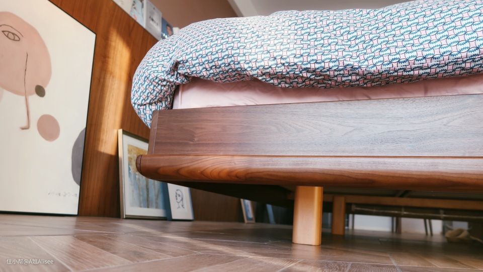 其次就是床的脚了,脚要扎实,千万不能选一个床扎扎实实的,但腿做的很纤细,就会有种不敢上床的既视感。腿要做的稳固扎实才更耐用哦。