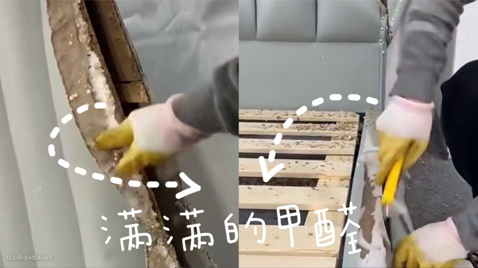 市面上很多“千元床”外表光鲜亮丽,实则一团污秽。可以说是一个甲醛集合体。
