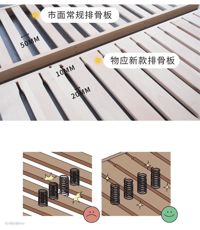 其次呢是,我家的床垫买的都是独立弹簧的,所以不太适合那种间距很宽的排骨架。