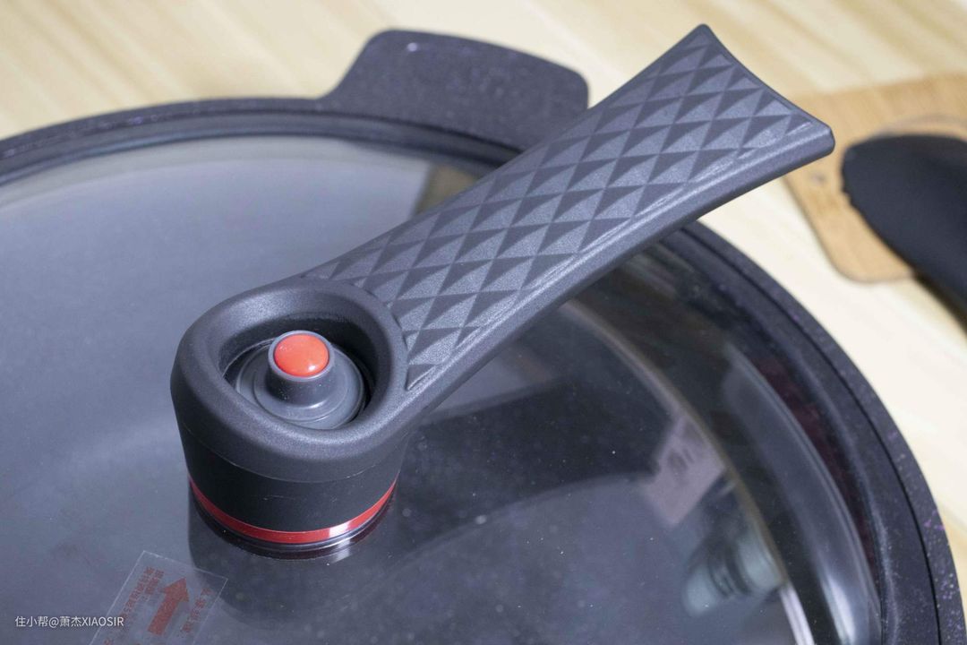 关于微压功能的存在,主要是锅盖的作用,玻璃锅盖的边缘围上了一圈橡胶密封条,实测密封性非常足够,在我单手握住锅盖时,锅体还是牢牢吸紧猪锅盖。在焖煮食材时,就可以起到很好的气密性,锅内的压强和外界会形成一个较大的反差,食材就更加容易软烂,在锅盖中部有一个微压阀,当烹饪好食材之后,通过打开微压阀可以释放锅内的气体,从而轻松打开锅盖,倒出美味飘香的一道佳肴。
