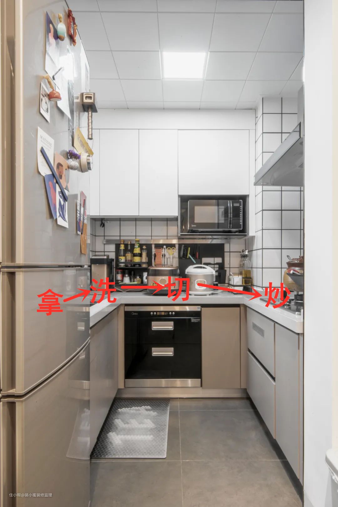 屋主@大灰狼妹妹家的U型橱柜布局:👇