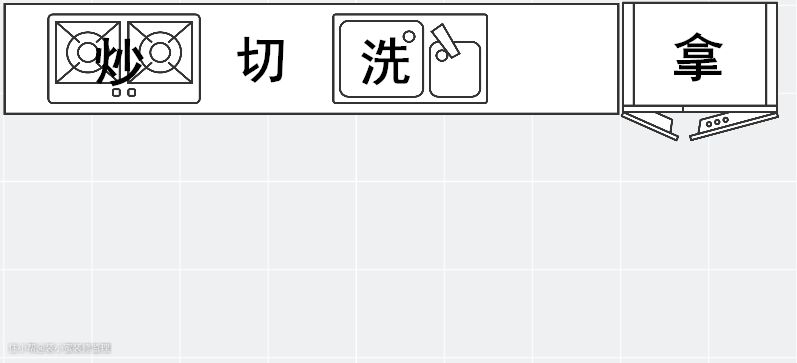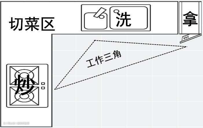 厨房最合理的动线,顺序应该是:(冰箱)拿-(水槽)洗-(台面)切-(灶台)炒。