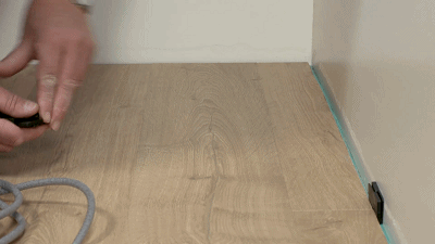 这项工作也要确保墙面和地面之间留出5mm的缝隙,留缝对于施工精度要求比较高,胶就是要掩盖这层缝隙。前提是地板要胶黏,墙面垂直找平要从顶面到地面全部找平,和油工说好墙面的处理方法,铺设地板前也要和地板工人交接。