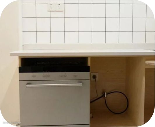 4. 嵌入式洗碗机如果设在水槽底部,插座开关建议安装在相邻柜体内,需要断电时不用搬开洗碗机(嵌入式烤箱、微波炉同理),也防止漏水漏电。