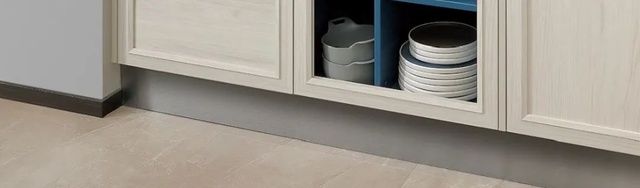 ⑤地脚板(又称“踢脚板”)——防止柜子潮湿腐烂,靠近地面包覆柜子边缘的组件