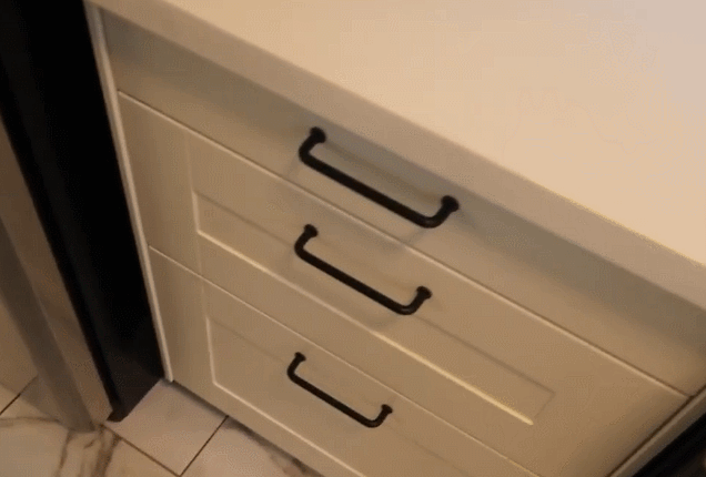“暴露在外”的五金件,比如柜门拉手等,最好经过电镀或者静电喷漆,用在橱柜也不担心不小心沾上酱油、醋就被腐蚀。