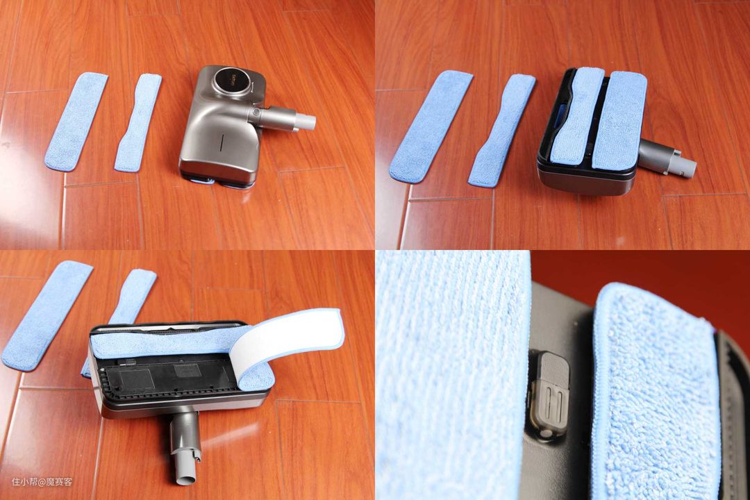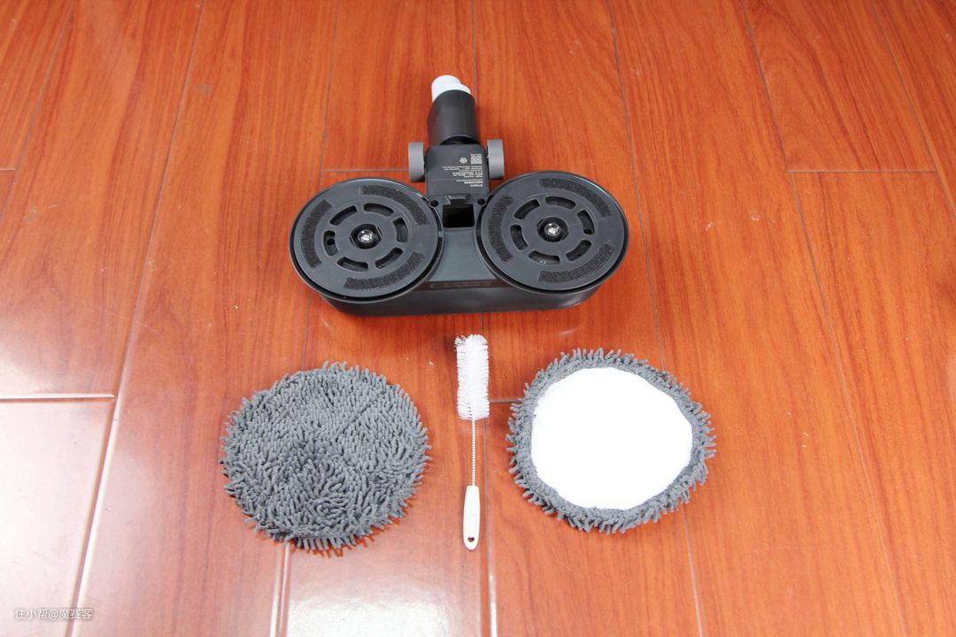 ▲超细纤维的拖布通过魔术贴的方式和转轮连接,方便清洗更换,相较于一代拖布,二代拖布采用的超细纤维绒毛加厚加粗,同时也增加了使用寿命。